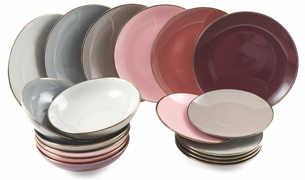 Gres: il mix perfetto tra semplicità e spessore I piatti realizzati in gres si fanno notare subito per la forte personalitàsvelata dalla robustezza del materiale. Spessi e resistenti, mantengono il calore delle pietanze calde e ne agevolano il servizio. Sviluppano in tavola la filosofia del colore attraverso sferzanti cromie e forme funzionali che si completano con finiture lucide o opache. Scomposti a tavola Ogni servizio è formato da 6 posti tavola, ognuno con un decoro o un colore diverso dagli altri piatti della stessa apparecchiata. Chi sceglie gli Scomposti avrà una tavola non convenzionale e diversa, multicolore, con fantasie e colori alternati. Attribuiamo ad ogni ospite seduto attorno ad una tavola un colore diverso, perché ognuno contribuisce in modo differente alla convivialità.