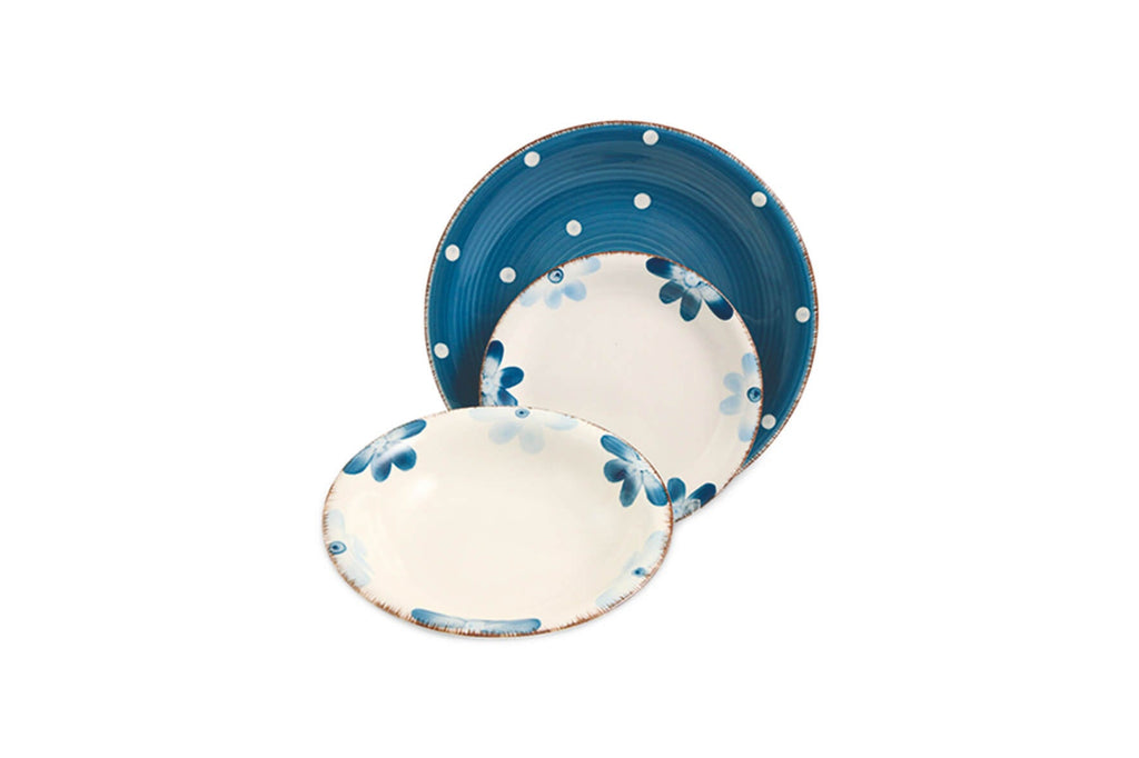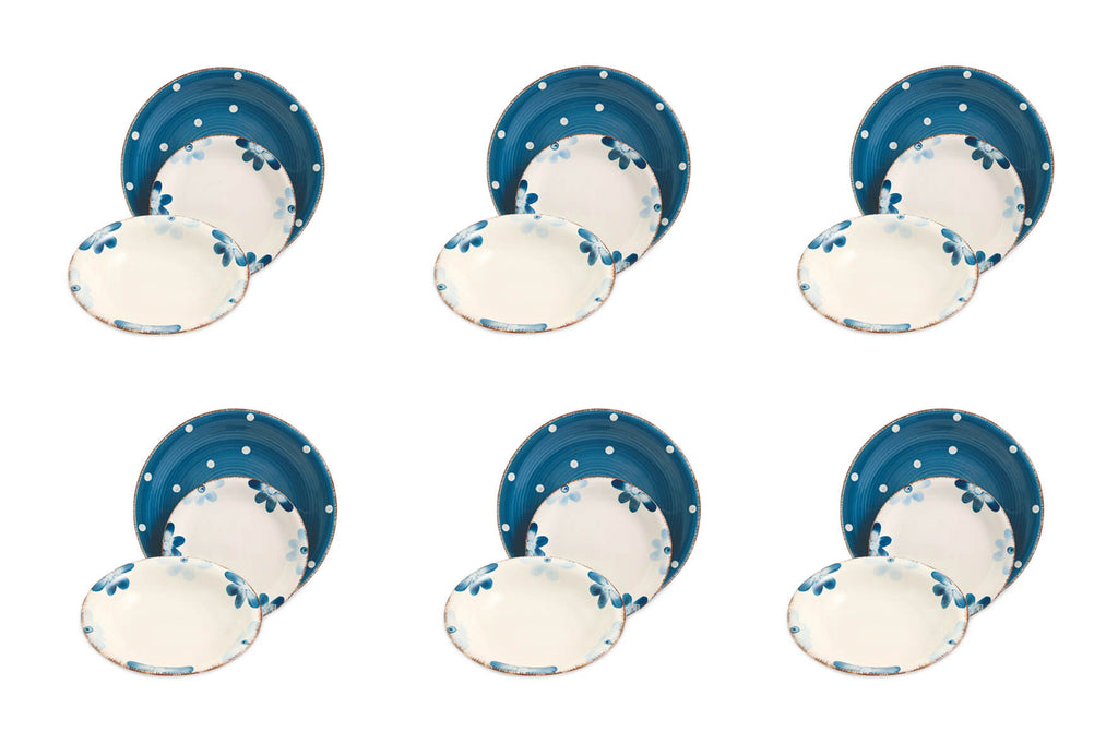Servizio Piatti 18 Pezzi in Gres Villa d'Este Margarita Azzurro