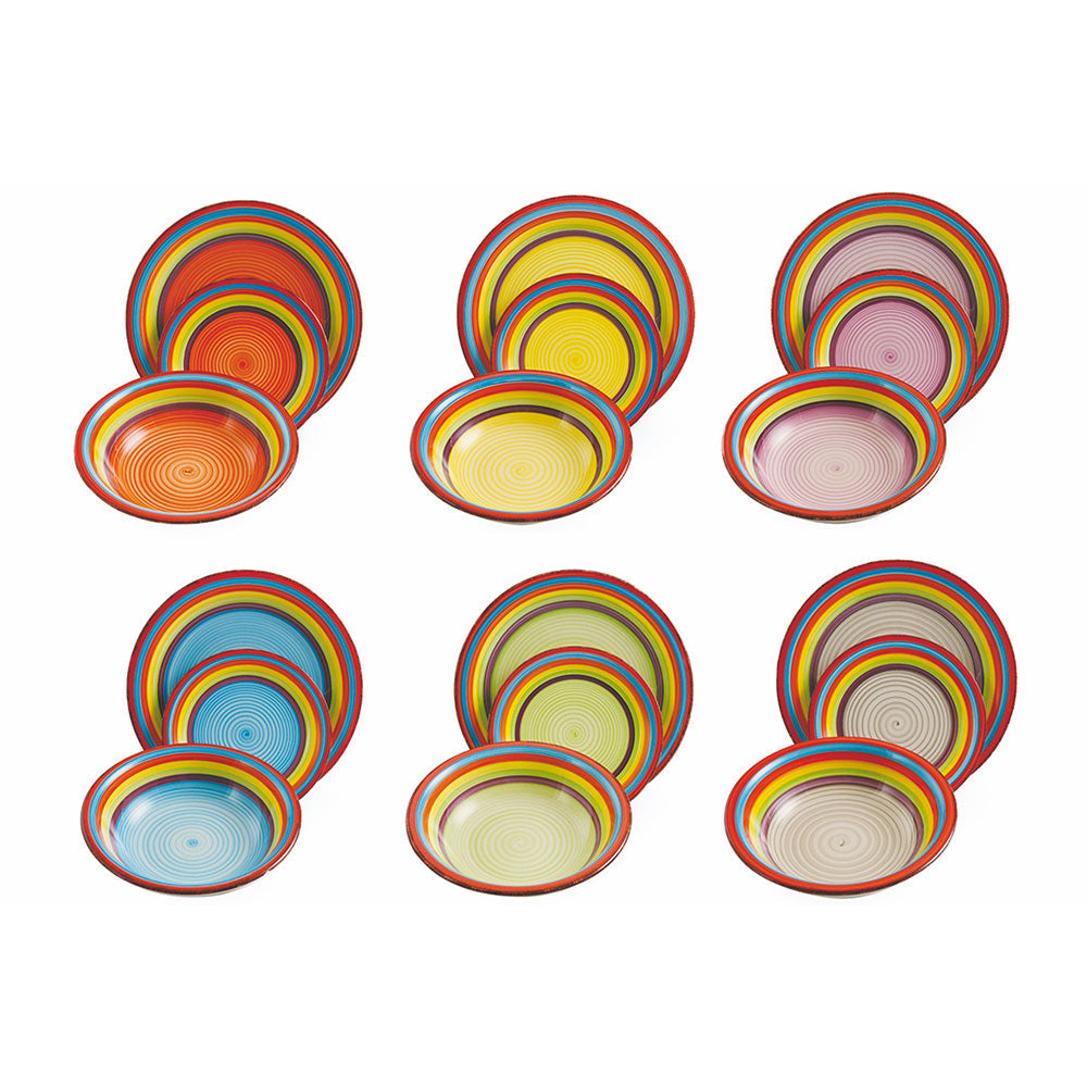 - Ogni servizio è formato da 6 posti tavola, ognuno con un decoro o un colore diverso dagli altri piatti della stessa apparecchiata.