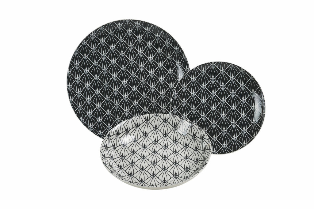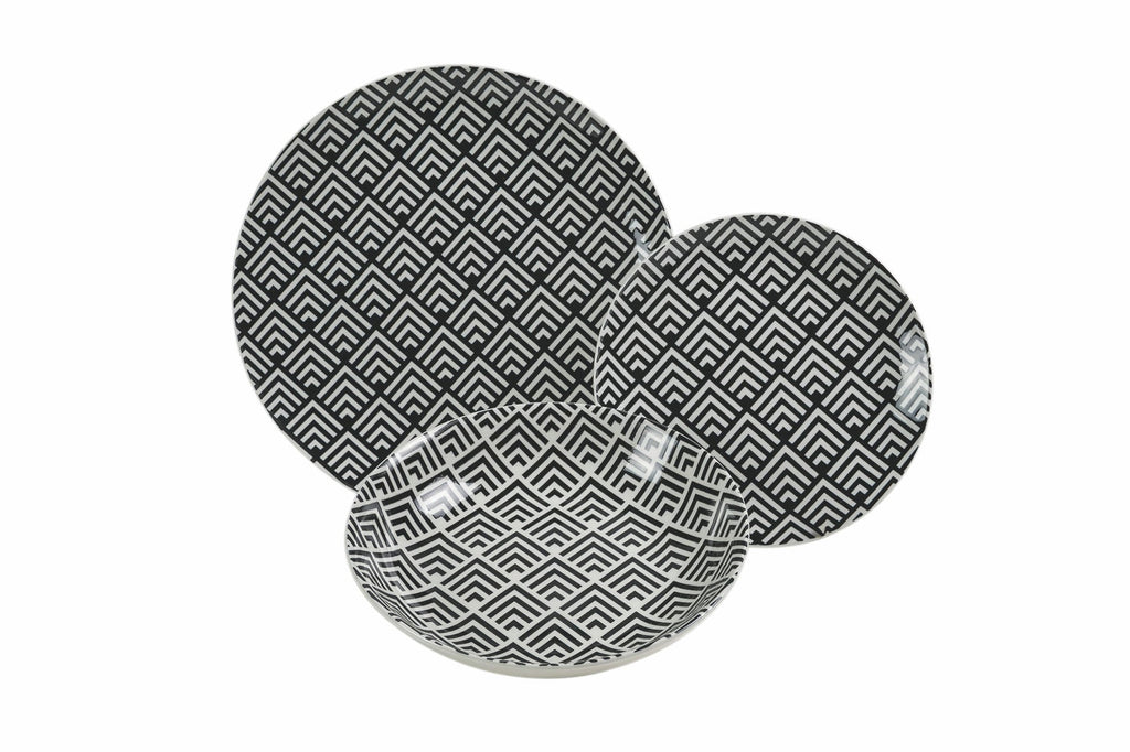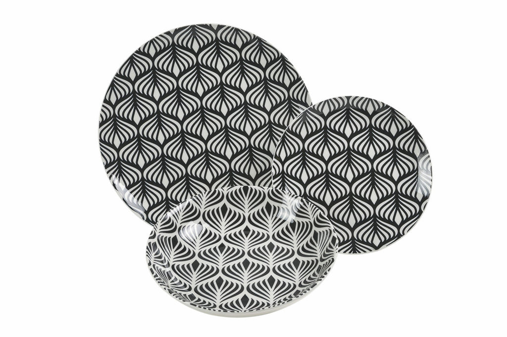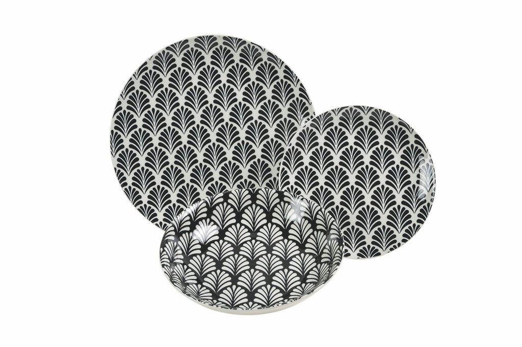 Il servizio Deco Life, ispirato nel nome e nel decoro all'Art Déco dei ruggenti anni venti, è caratterizzato da linee simmetriche e geometrie nette, le stesse che hanno contraddistinto le grandi architetture di quel periodo. Trame moderne e al contempo ordinate, sono queste le peculiarità riportate all'interno della nostra apparecchiata in un luminoso black and white che non passa mai di moda.