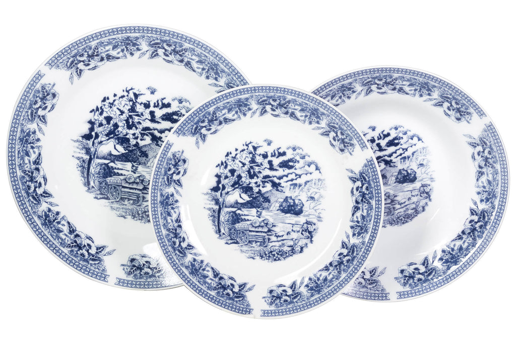 Servizio Piatti 18 Pezzi in Porcellana con Decori Collection Old England Bianco/Blu