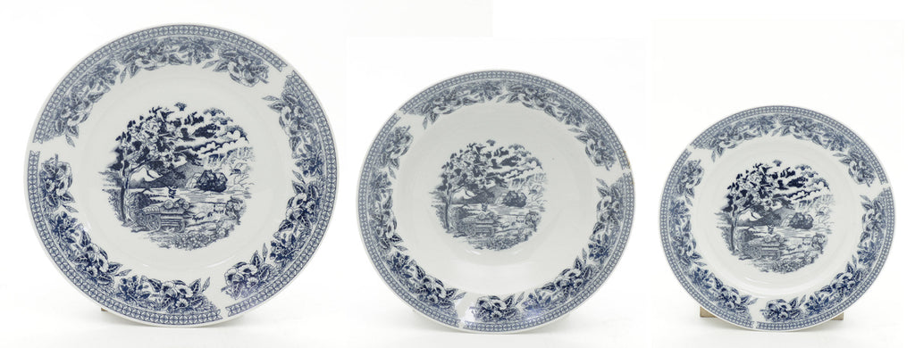 Servizio Piatti 18 Pezzi in Porcellana con Decori Collection Old England Bianco/Blu