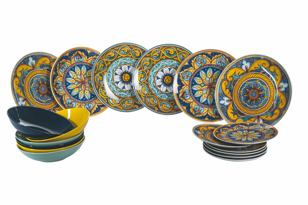 Servizio Piatti 18 Pezzi in Porcellana e Gres 6 Posti in 3 Diversi Decori Villa d'Este Home Tivoli Scilla