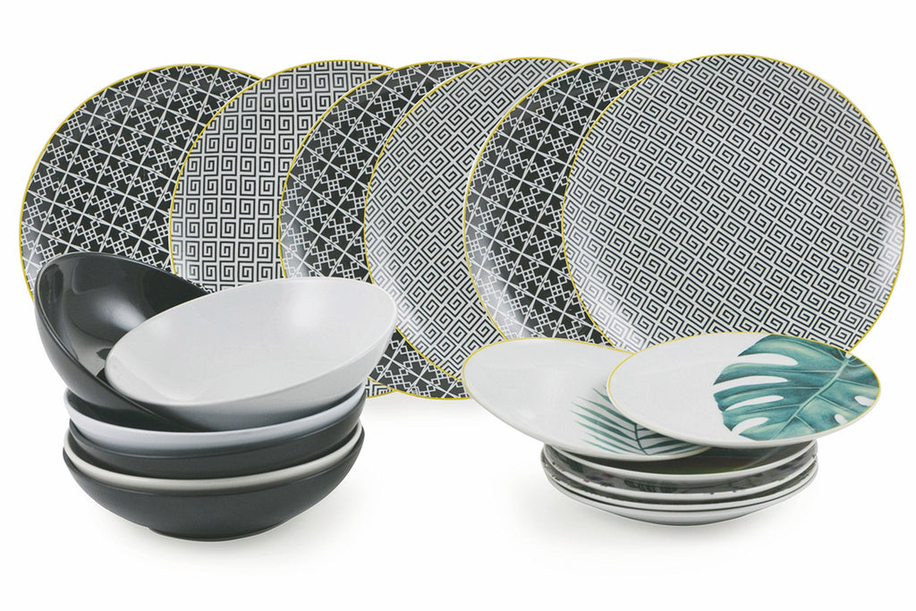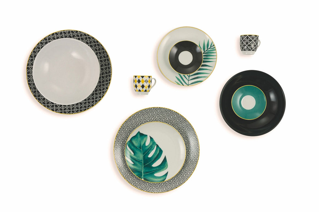 Servizio Piatti 18 Pezzi in Porcellana E Gres, 6 Posti Tavola Villa d'Este Home Tivoli Urban Jungle