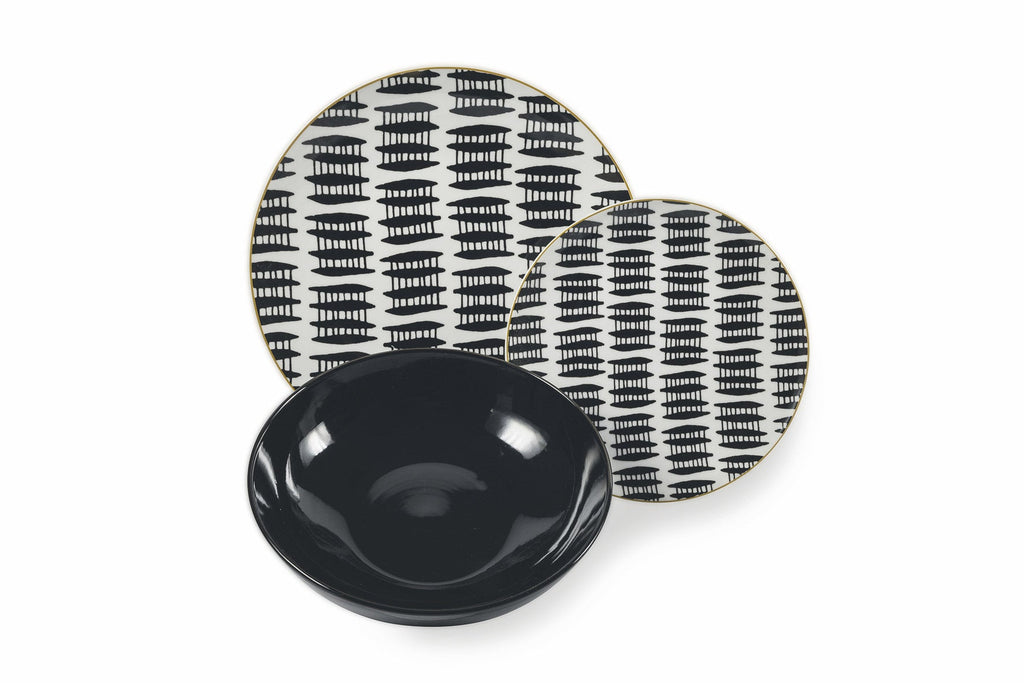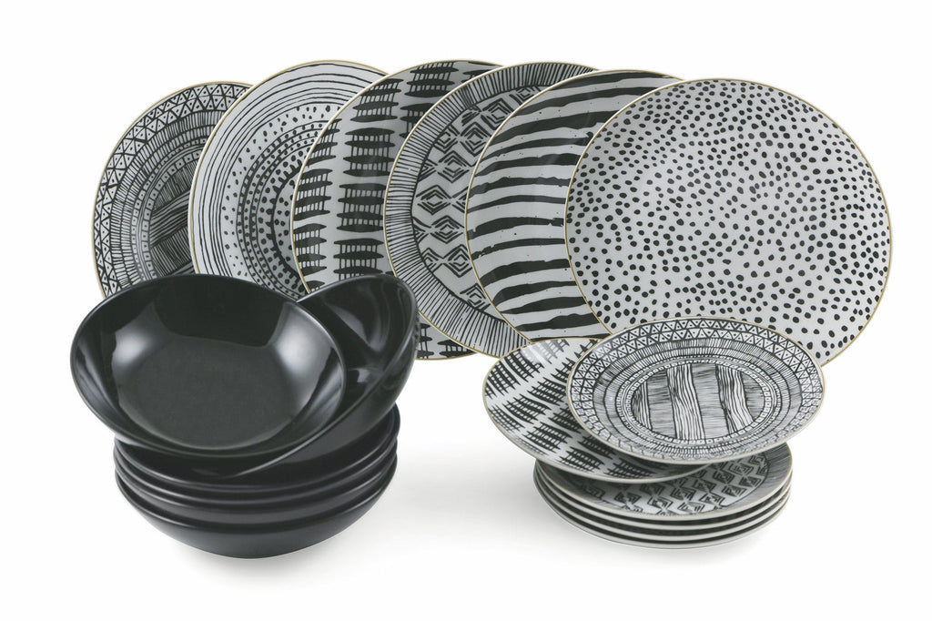 Servizio Piatti 18 Pezzi in Porcellana e Gres Multicolor Villa d'Este Home Tivoli Masai Black