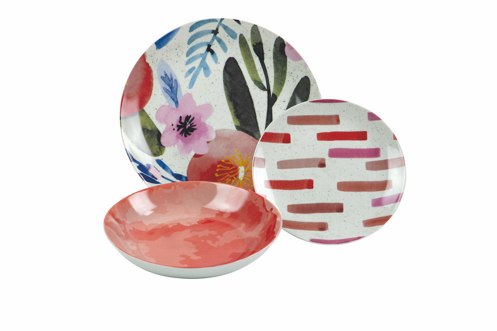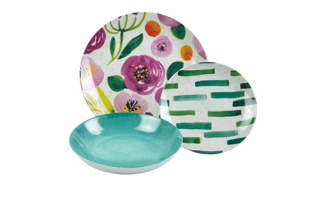 Servizio Piatti 18 Pezzi in Porcellana e Gres Multicolor Villa d'Este Home Tivoli New Acquerello