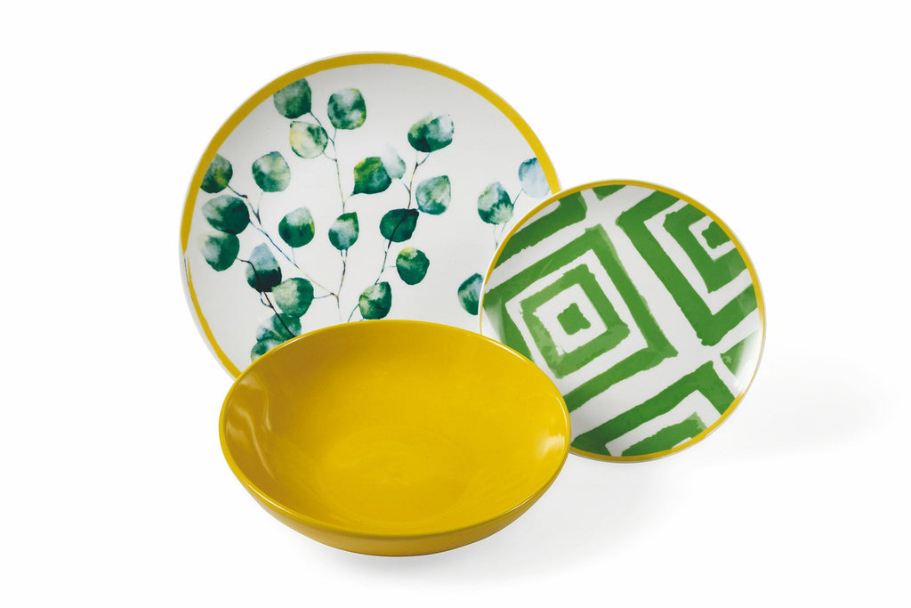 Servizio Piatti 18 Pezzi in Porcellana e Gres Multicolor Villa d'Este Home Tivoli Oriental Botanique