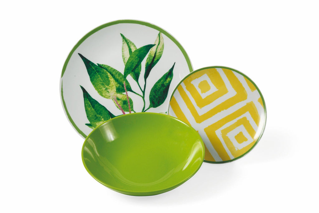 Il menù di oggi? Primavera in tavola! Questo set, dal design fresco e creativo, è l'ideale per chi ama l'allegria e i colori della bella stagione, e desidera portare una nota di colore in tavola. Le bellissime rifiniture realizzate con la tecnica della decalcomania riflettono l'artigianalità del design creativo italiano, declinato in uno stile tutto orientale. Oriental Botanique è la linea che unisce l'eleganza e la finezza della porcellana con la funzionalità e la resistenza del gres, ideale sia per piatti freddi che caldi. La superficie smaltata esalta le cromie delle stampe della vegetazione e le la brillantezza delle esplosioni di colori. Questo è il set ideale per chi: Desidera portare uno sprizzo di colore e vivacità in tavola - Ambisce a ricreare un'atmosfera accogliente, calda e rilassante, tipica della bella stagione. Cosa non deve mai mancare: Non possono sicuramente mancare bicchieri colorati che si abbinino al set, magari utilizzandoli anche come segnaposto per gli ospiti. - Una tovaglia che rimandi all'immaginario di un meraviglioso campo fiorito.