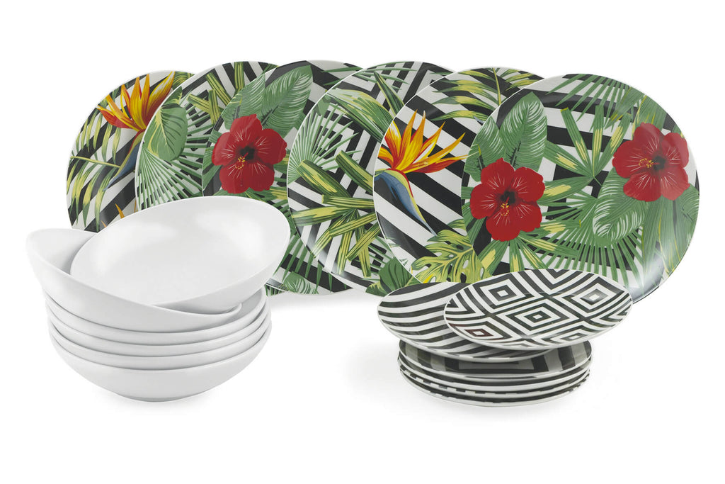 Servizio Piatti 18 Pezzi in Porcellana e Gres Villa dEste Club Tropicana