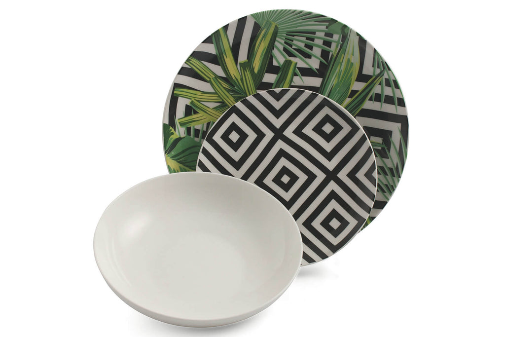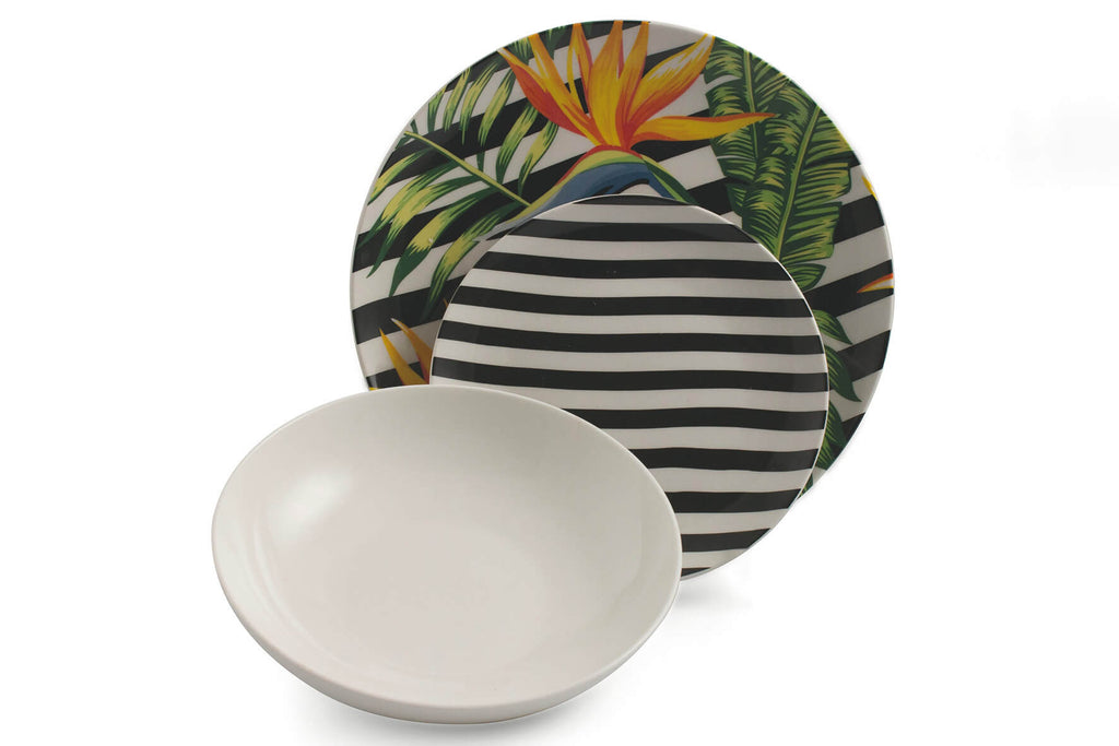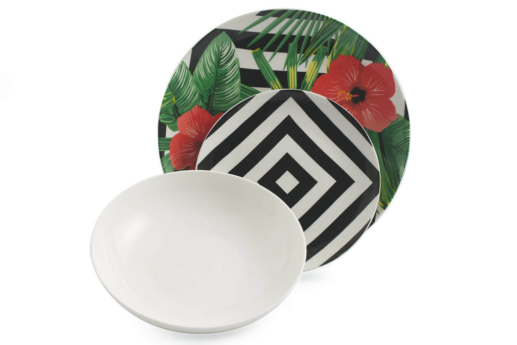 Servizio Piatti 18 Pezzi in Porcellana e Gres Villa d'Este Club Tropicana