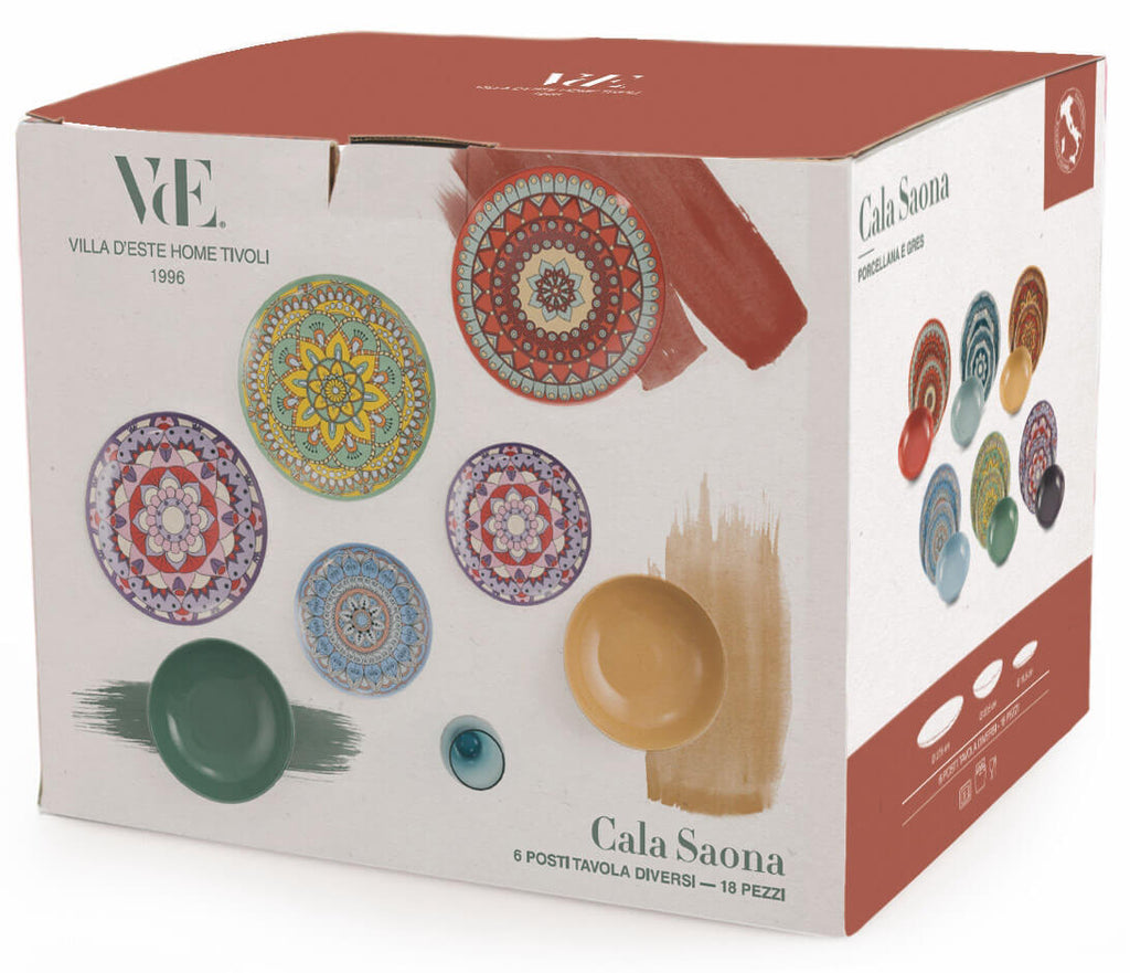 Caratteristiche Servizio Piatti 18 Pezzi in Porcellana e Gres VdE Tivoli 1996 1996 Cala Saona Multicolor