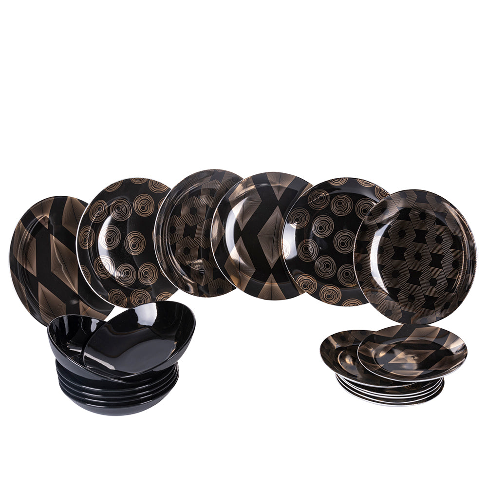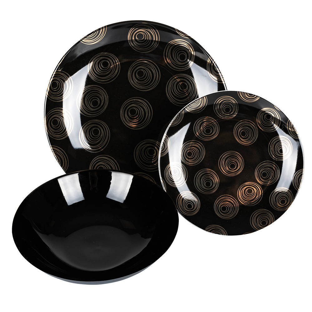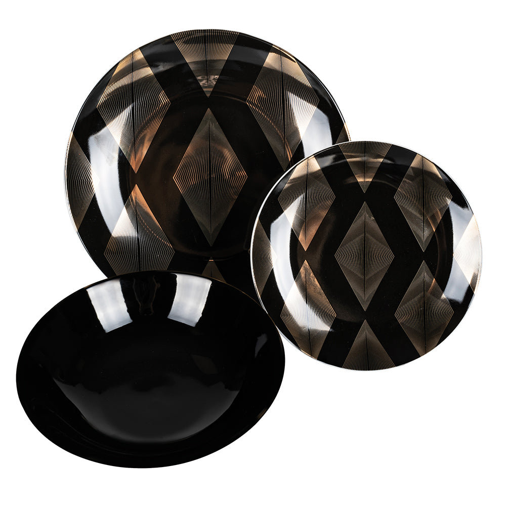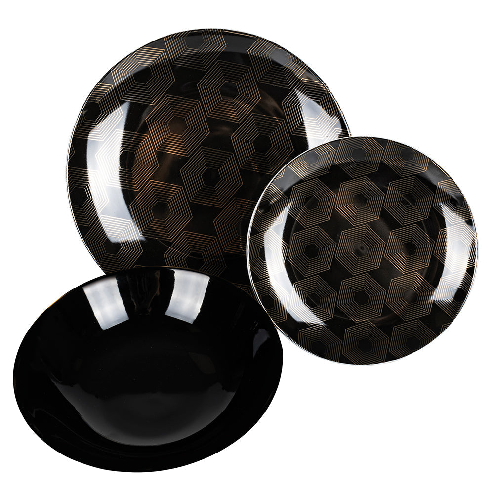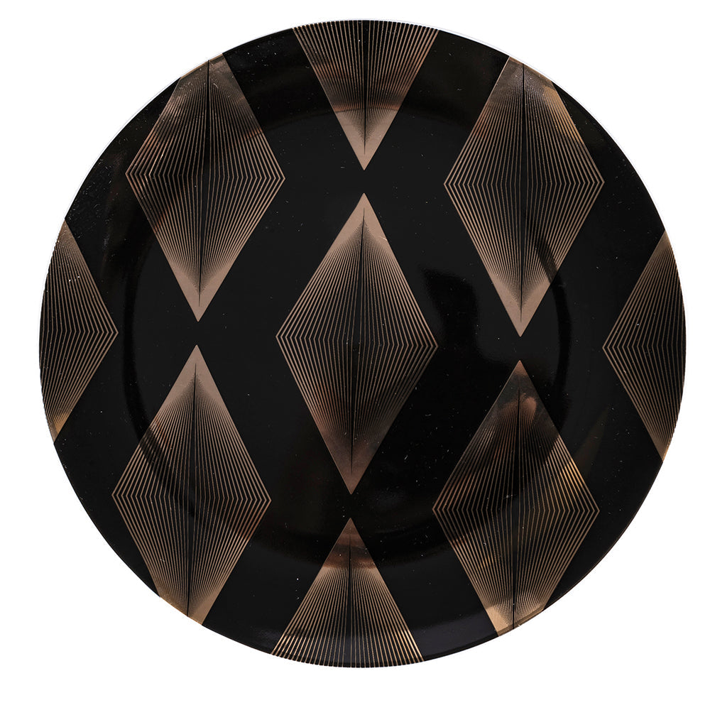 Oro, nero e tutta la bellezza di un superclassico. L'abbinamento dell'oro e del nero dice subito eleganza: a tavola e nei complementi d'arredo se amate, dunque, la ricercatezza e desiderate circondarvi di dettagli che si fanno notare per la loro personalità, il servizio tavola e gli accessori della linea Mondrian sono la scelta più scintillante e glamour che possiate fare. Il decoro ottico è il biglietto d'ingresso per un'affascinante atmosfera Art déco.