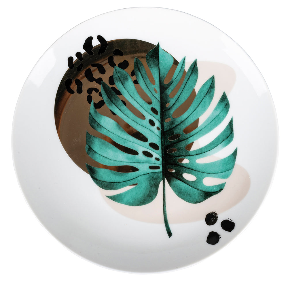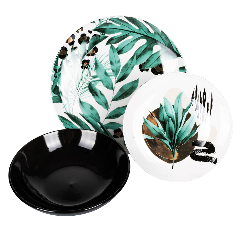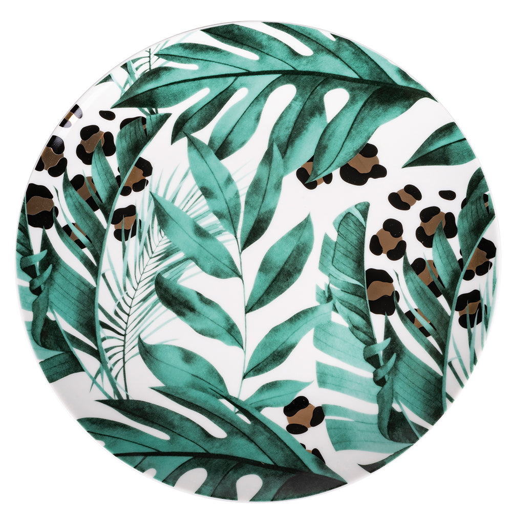 Lo stile jungle è l'lternativa perfetta per creare un piccolo spazio verde sulla tua mise en place, un oasi incantevole arricchita da un tocco di selvaggio animalier. La linea Samana si ispira proprio a questo: un esplosione di eleganti foglie verdi esotiche che si intersecano fra loro su sfondi uniformi ma arricchiti da dettagli che, nella loro semplicità, danno un tocco di colore e ricercatezza.