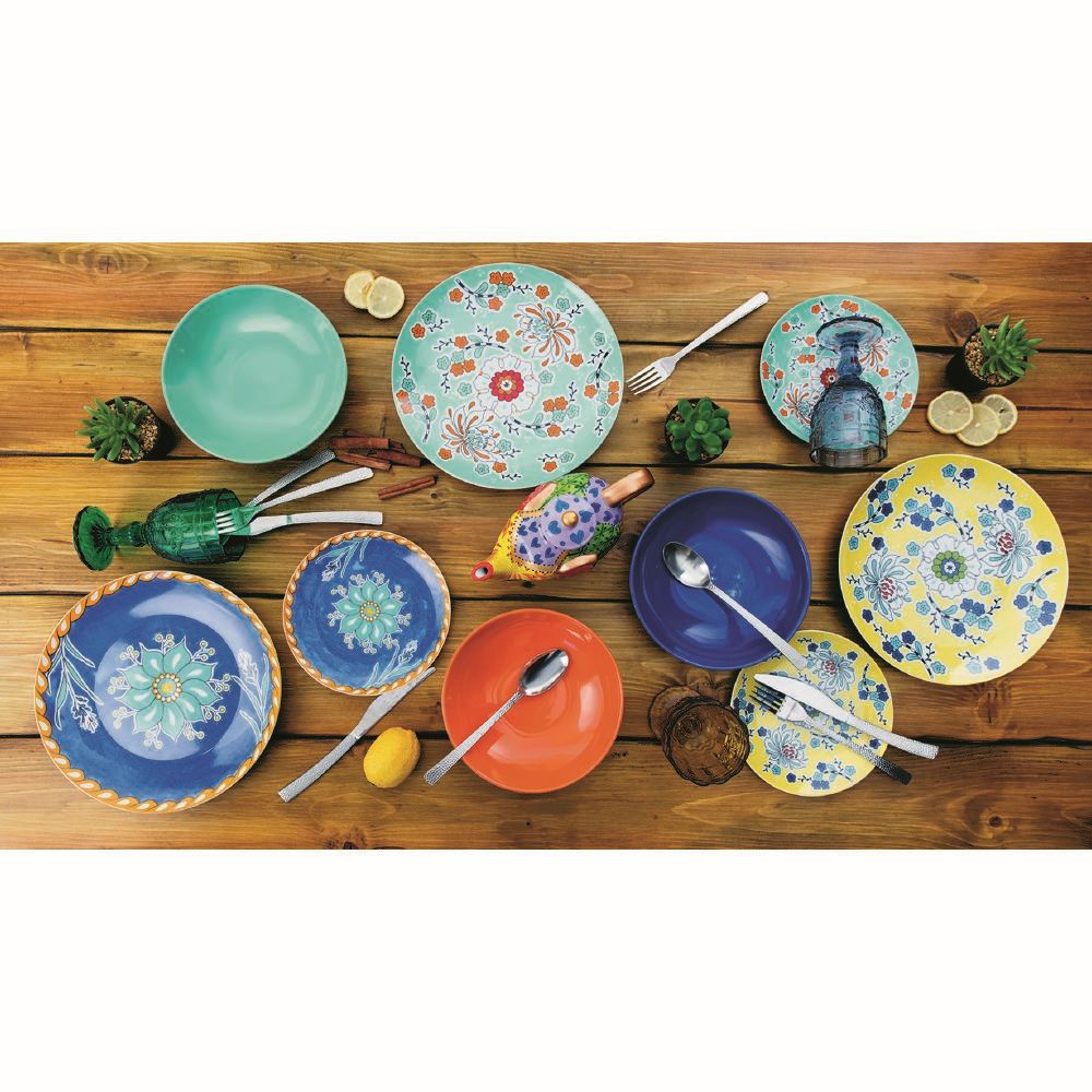- Il gres smaltato dei sei piatti fondi, invece, porta in tavola la funzionalità: spesso e resistente mantiene il calore di primi piatti caldi come zuppe e minestre e ne agevola il servizio. La superficie smaltata esalta le cromie della tavola.