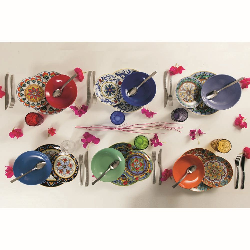 - Il gres smaltato dei sei piatti fondi, invece, porta in tavola la funzionalità: spesso e resistente mantiene il calore di primi piatti caldi come zuppe e minestre e ne agevola il servizio. La superficie smaltata esalta le cromie della tavola.