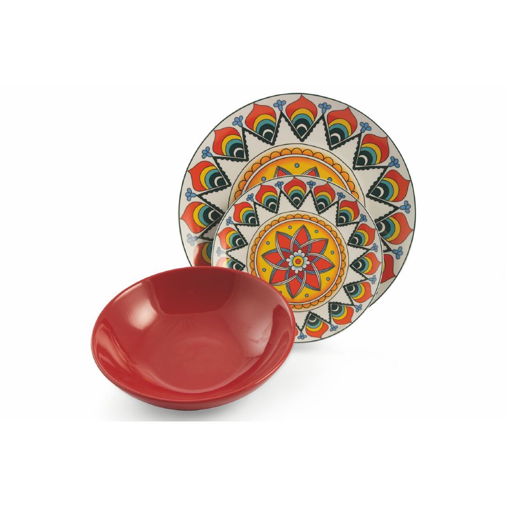 - Ogni servizio è formato da 6 posti tavola, ognuno con un decoro o un colore diverso dagli altri piatti della stessa apparecchiata.