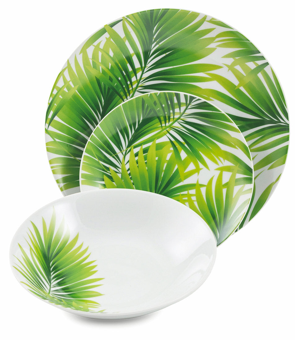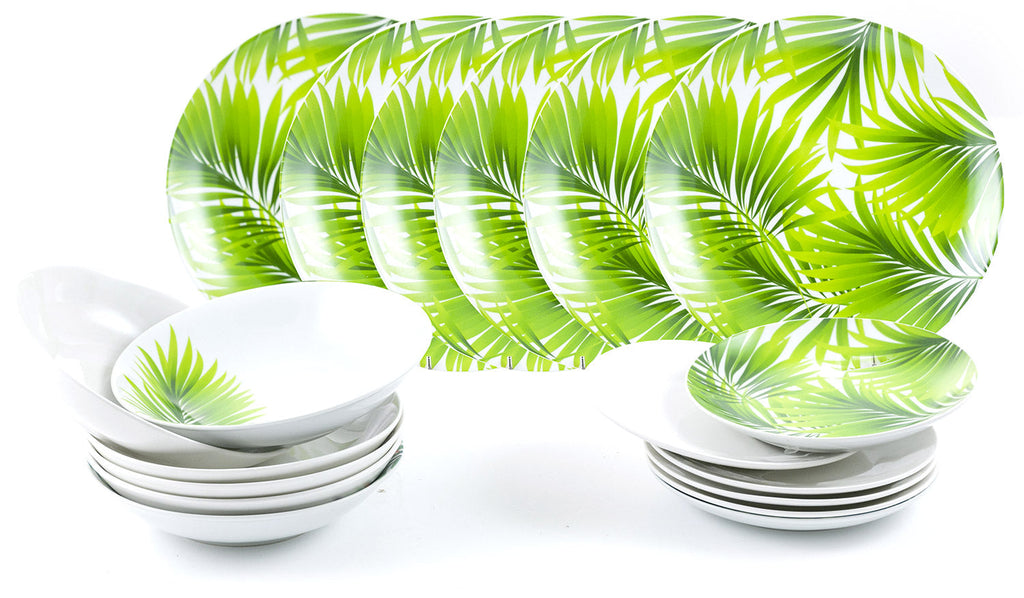 Servizio Piatti 18 Pezzi in Porcellana Soriani Foglie Verde