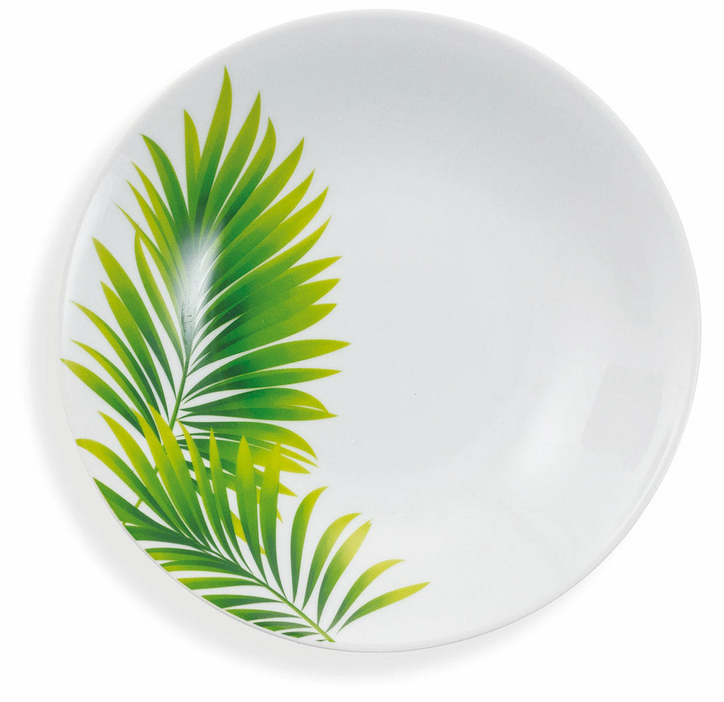 Il servizio piatti Foglie porta in tavola il verde intenso della faunatropicale. Lo stile esotico e le forme stilizzate rendono la tavola unica e ricercata.Realizzato in porcellana, risponde all'esigenza di leggerezza efunzionalità. La semplicità detta le regole della tavola, che non rinunciaa dettagli ricercati.