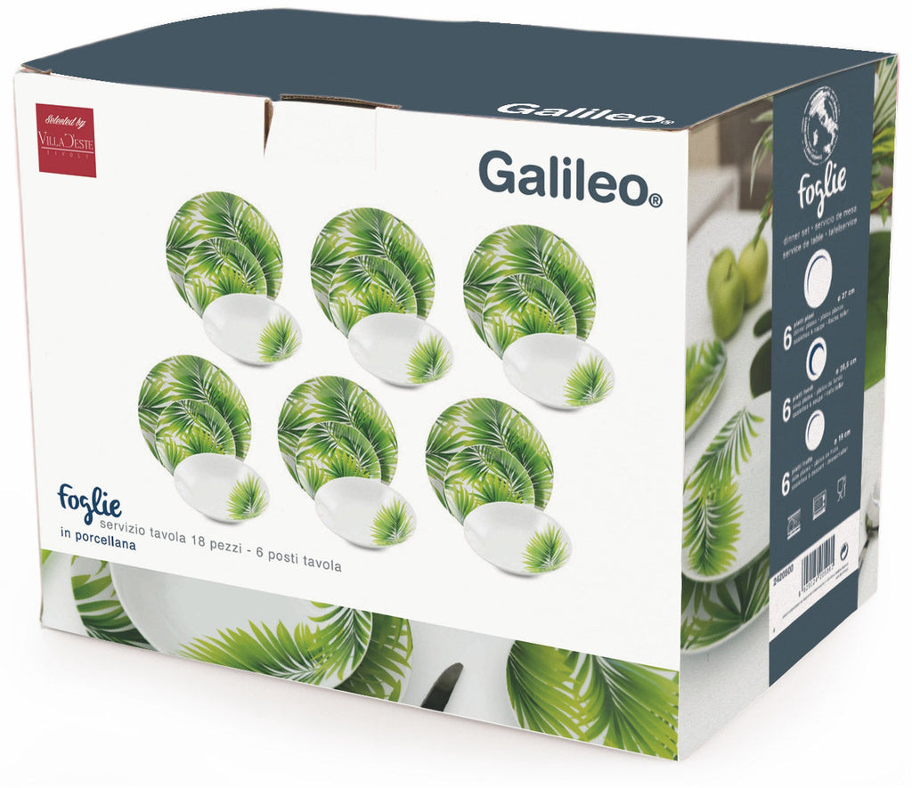 Caratteristiche Tecniche Servizio Piatti 18 Pezzi in Porcellana Soriani Foglie Verde