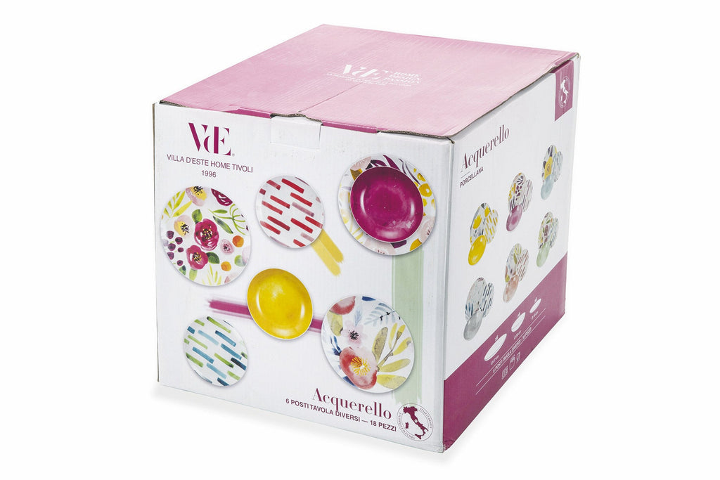 Servizio Piatti 18 Pezzi in Porcellana Villa d'Este Home Tivoli Aquerello Multicolor