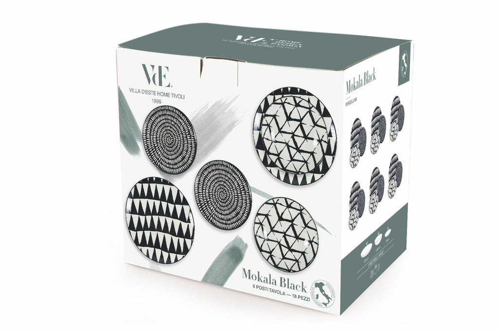 Servizio Piatti 18 Pezzi in Porcellana Villa d'Este Home Tivoli Mokala Neri