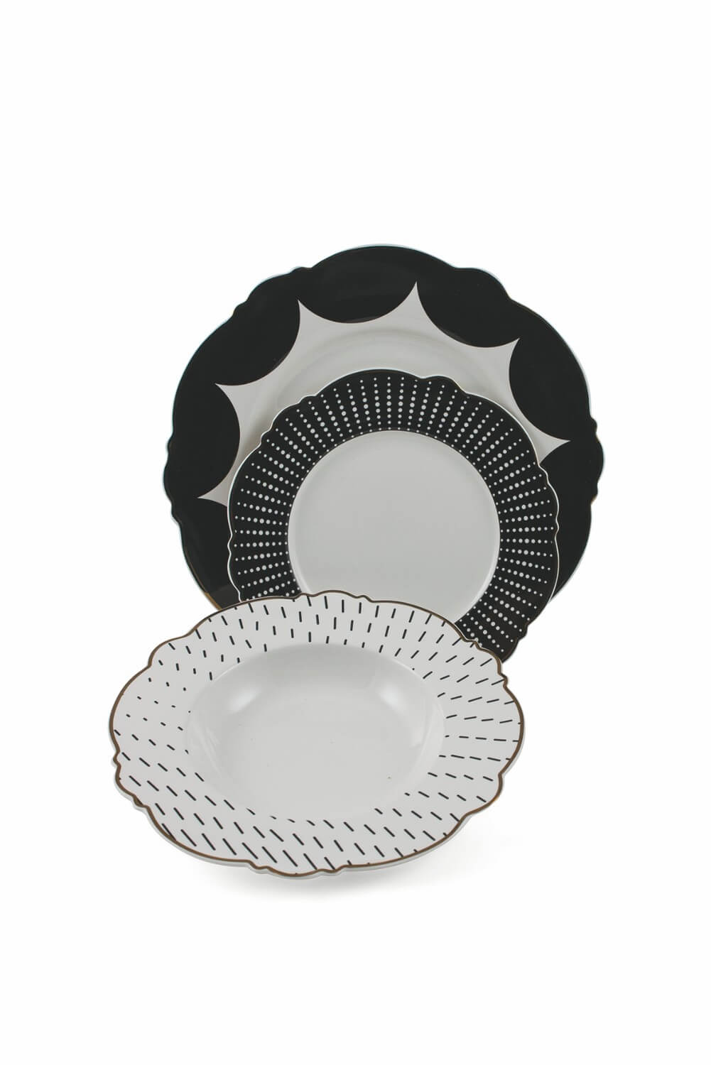 Caratteristiche Tecniche Servizio Piatti 18 Pezzi in Porcellana VdE Tivoli 1996 1996 Wonderland Nero