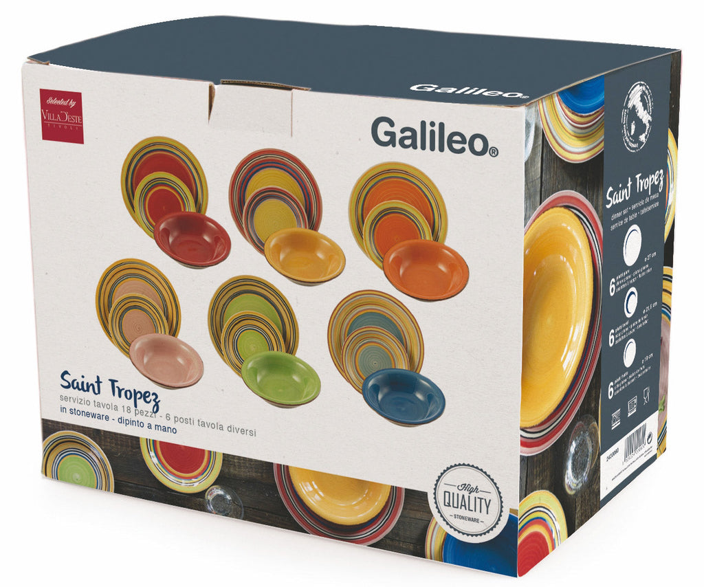Caratteristiche Tecniche Servizio Piatti 18 Pezzi in Stoneware Soriani Saint Tropez Multicolor