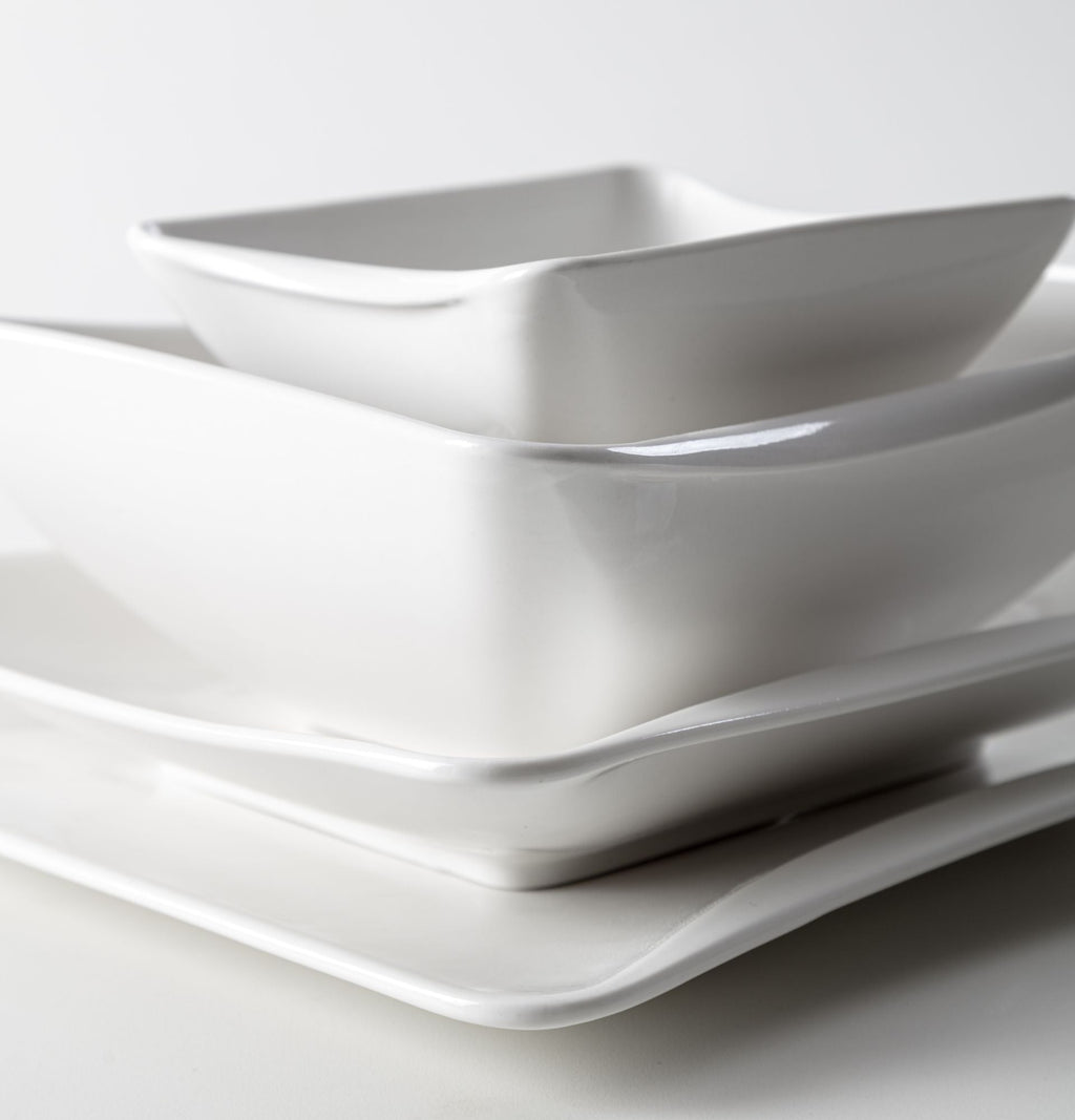 Servizio Piatti e Bowl da Tavola 16 Pezzi in Porcellana Bianca
