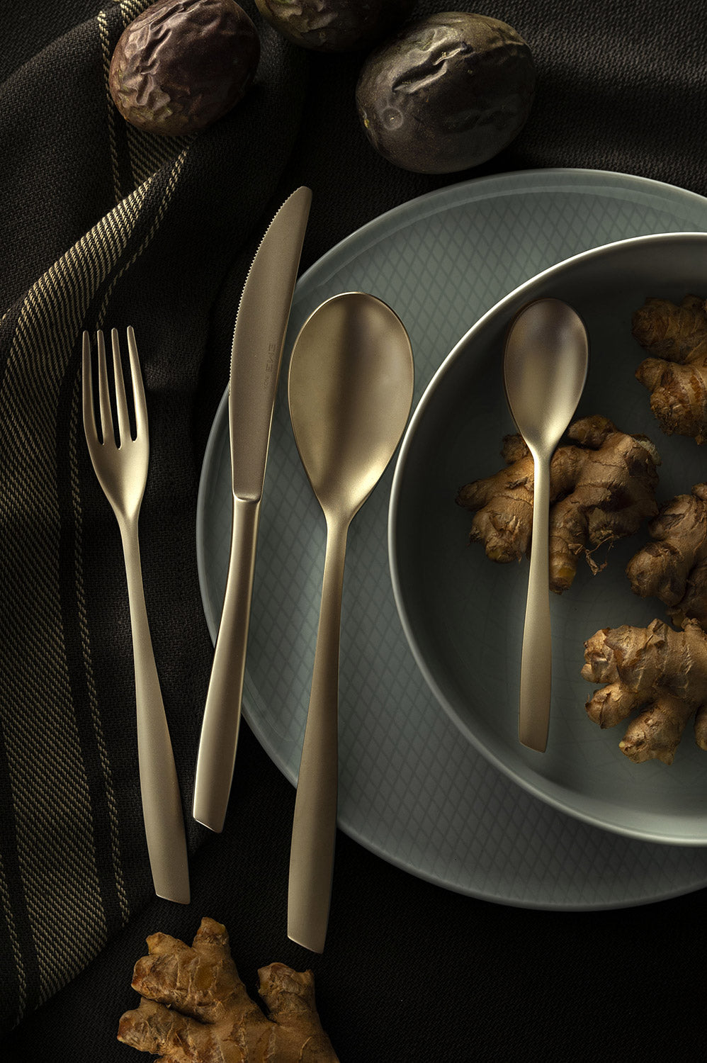Eleven Sabbiato Champagne è una collezione di posate in acciaio inossidabile 18/10 con finitura sabbiata e con una nuova e delicata nuance PVD color champagne.