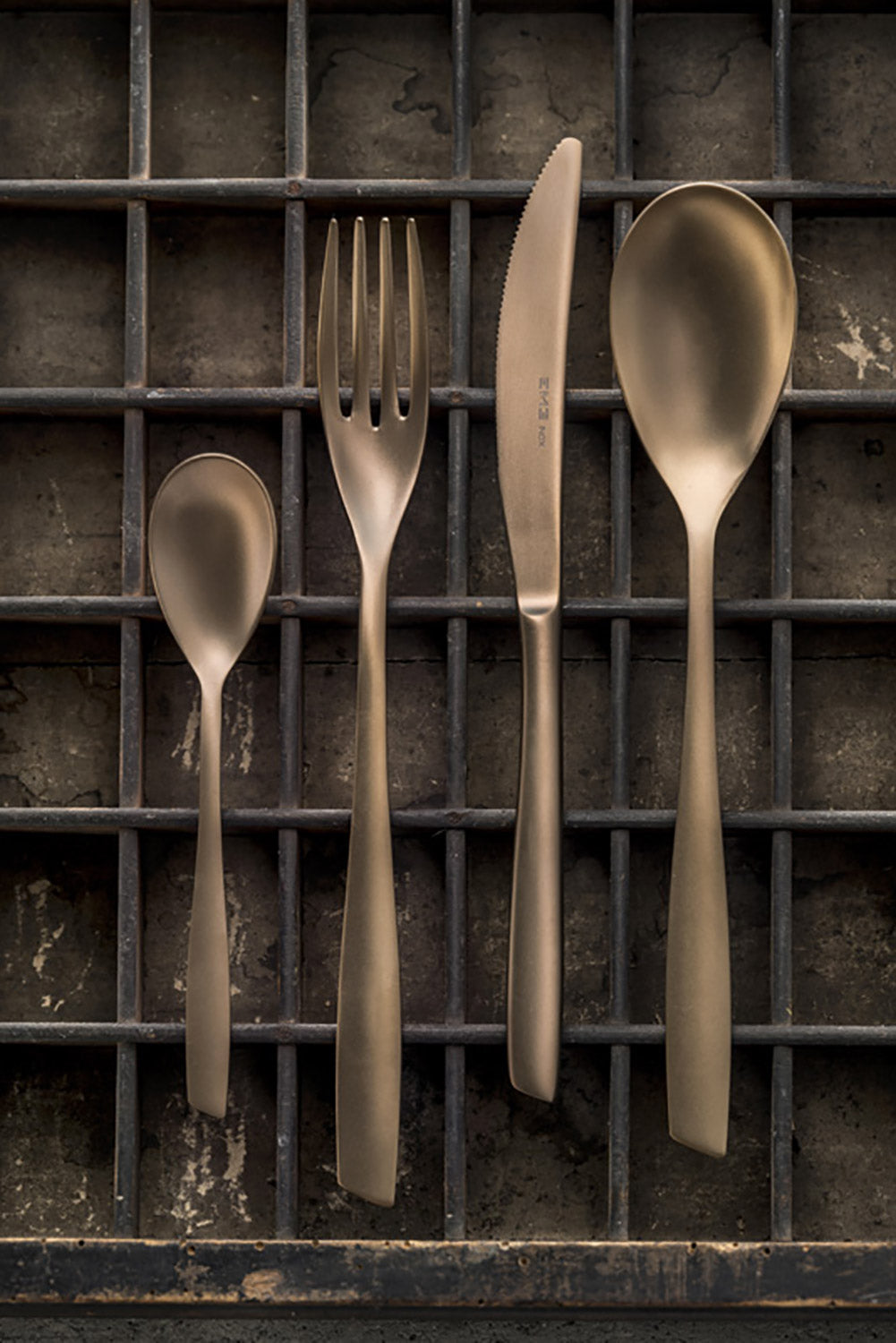 Eleven Sahara è una collezione di posate in acciaio inossidabile 18/10 con finitura sabbiata e brunita realizzata con trattamento PVD che la rende particolarmente esclusiva ed elegante.