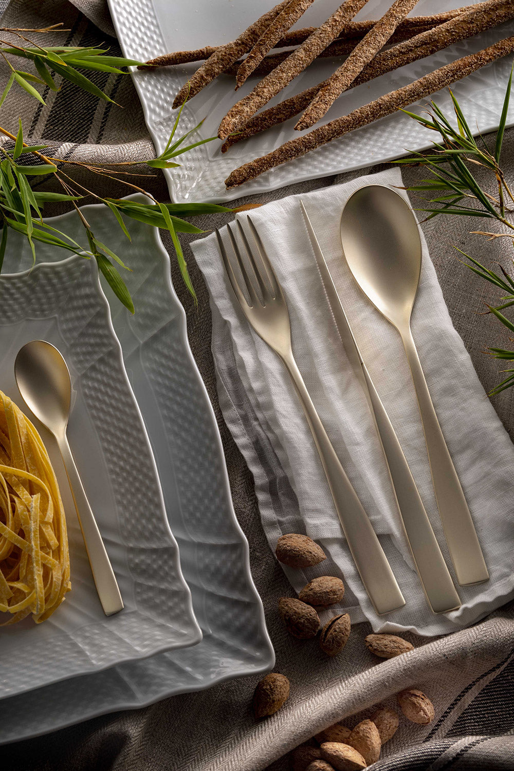 Etoile Sabbiato Champagne è una collezione di posate in acciaio inossidabile 18/10 con finitura sabbiata e con una nuova e delicata nuance PVD color champagne.