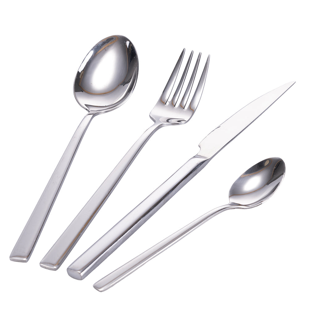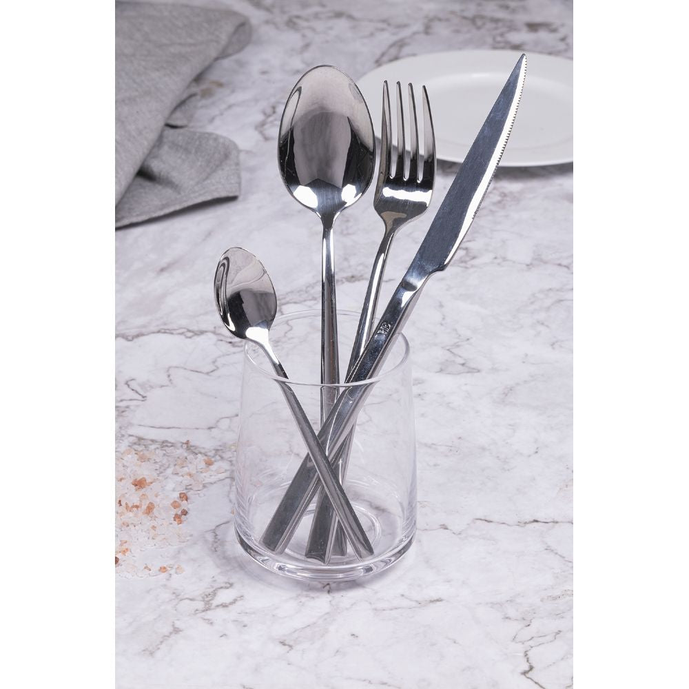 - Il set è composto da: 6 forchette, 6 coltelli, 6 cucchiai e 6 cucchiaini