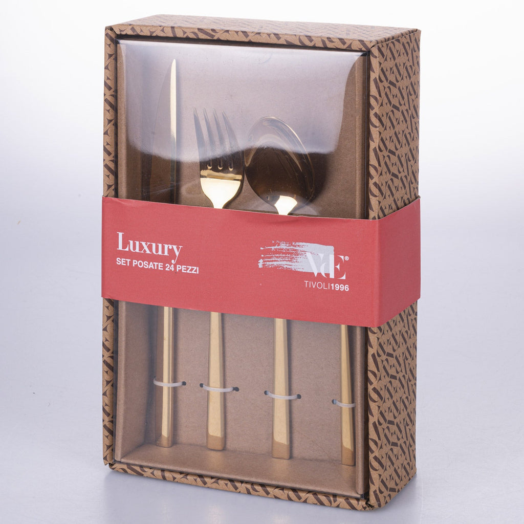 Servizio Set di Posate 24 Pezzi in Acciaio Inossidabile 18/8 VdE Tivoli 1996 Luxury Oro