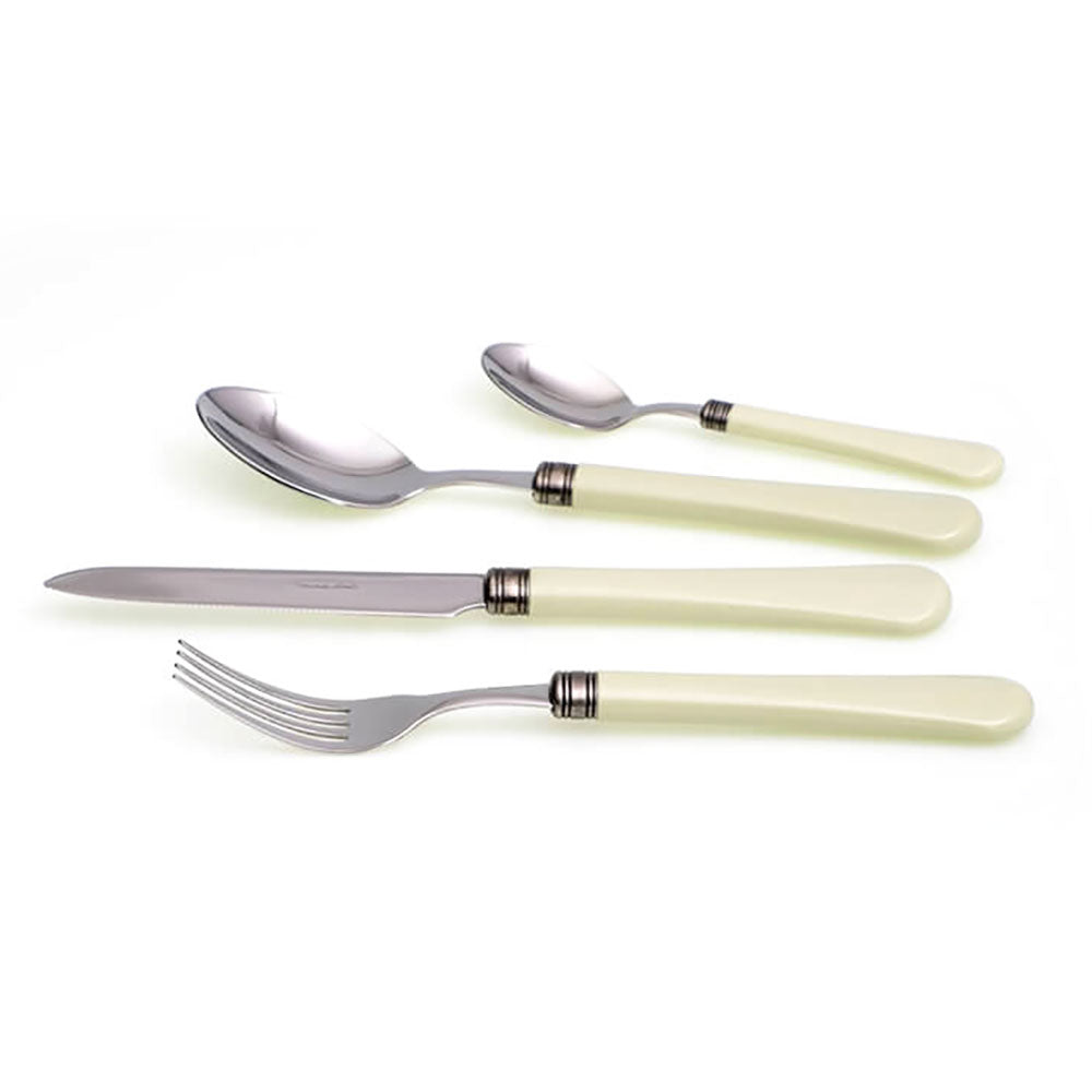 La confezione contiene: 6 coltelli - 6 forchette - 6 cucchiai - 6 cucchiaini caffè