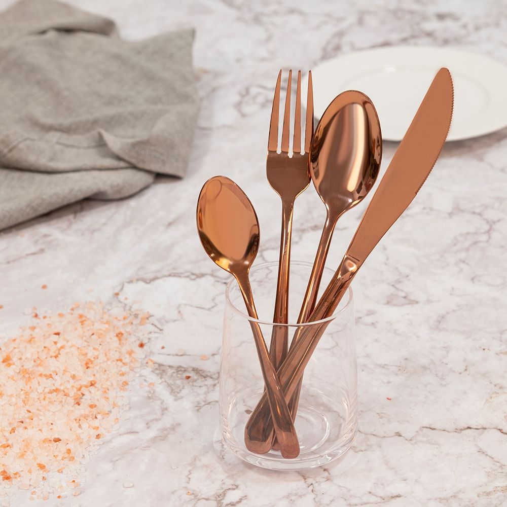 Servizio Set di Posate 24 Pezzi in Acciaio Inox VdE Tivoli 1996 Drop Rame Lucido