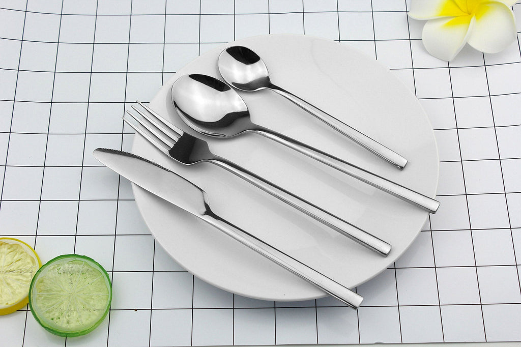 - Il set è composto da: 6 forchette,6 coltelli,6 cucchiai e 6 cucchiaini 6 posti tavola Resistenti all'usura Ideali per uso quotidiano