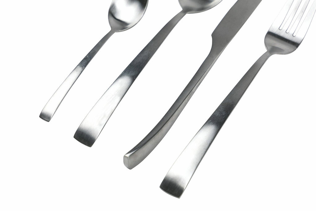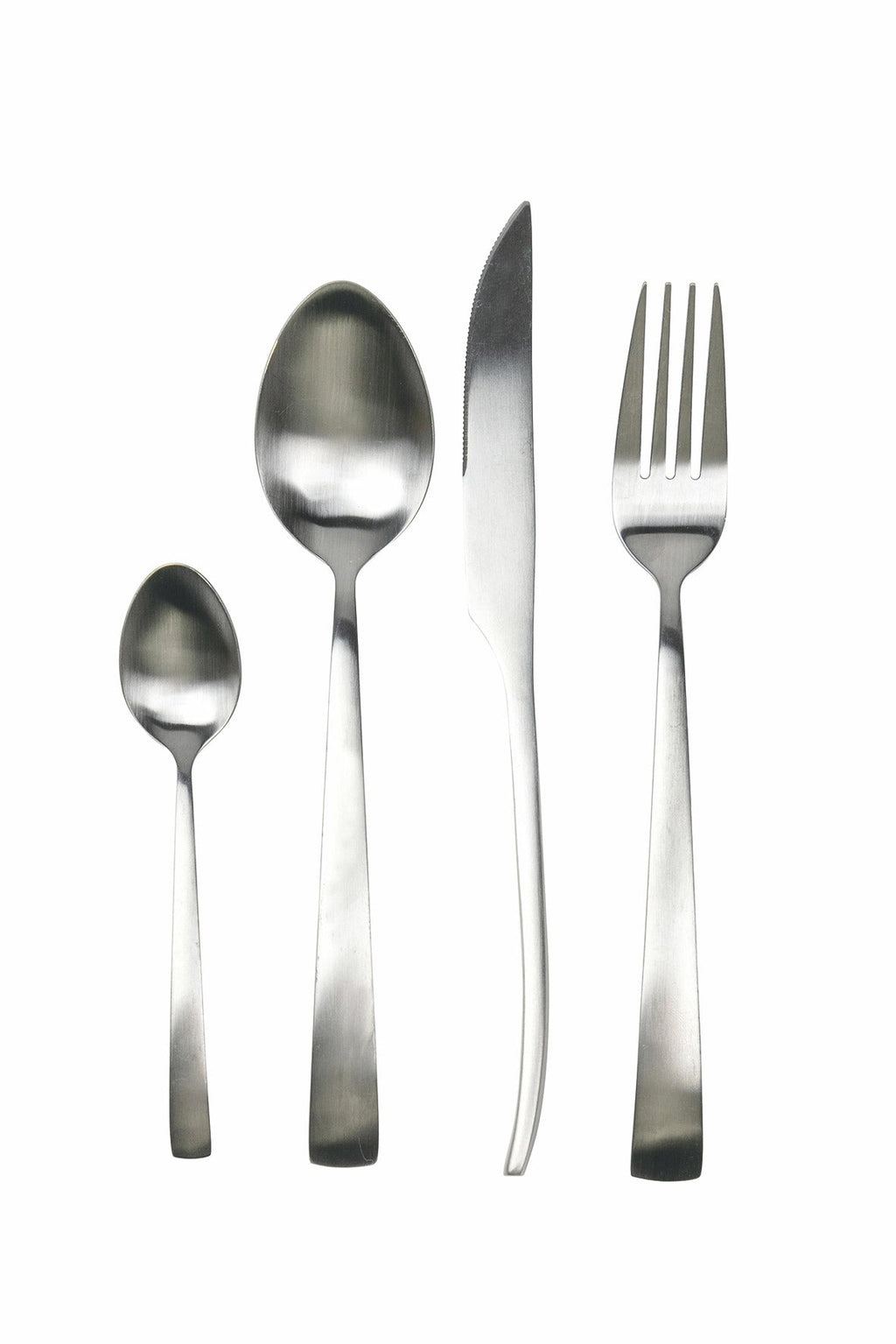 - Il set si compone di 6 coltelli, 6 forchette, 6 cucchiai, 6 cucchiaini