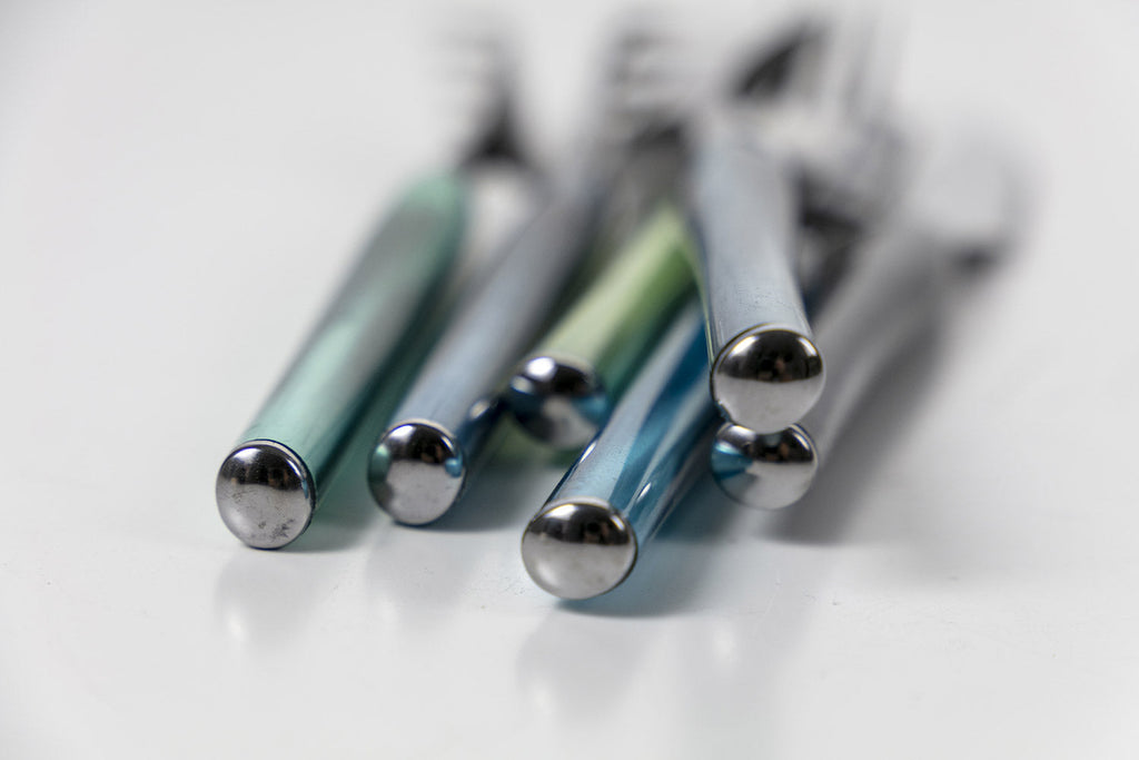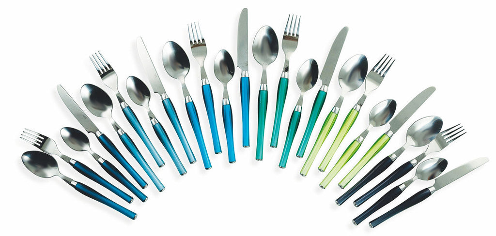 La linea di posate Alta Marea si fa notare per la brillantezza dei colori e il design snello. Sofisticate e alla moda, sono caratterizzate da un'anima in acciaio che le rende resistenti e durature e da una finitura satinata declinata in differenti colori. L'impugnatura è rivestita da plastica lucida per un effetto a tavola luminoso, innovativo e leggero.