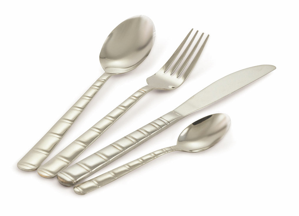 - Il set è composto da: 6 forchette,6 coltelli,6 cucchiai e 6 cucchiaini