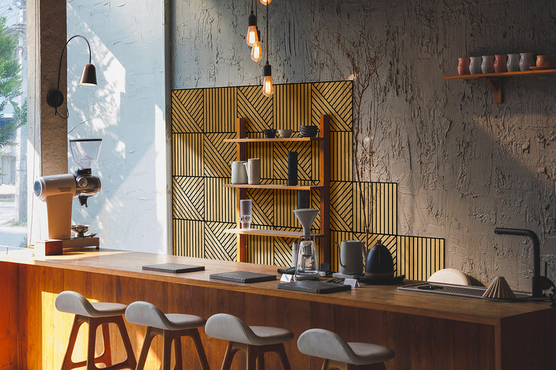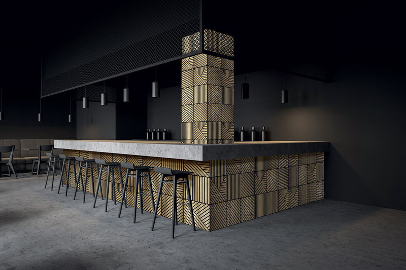 Questi pannelli Hoogapanel sono elementi decorativi prodotti infatti con legname di alta qualità idrofugo e certificato secondo gli standard internazionali FSC e CARB. Fissati alle pareti, grazie alle linee geometriche donano un tocco di design alle mura. Inoltre garantiscono un ottimo grado di isolamento acustico e termico all’interno sia di uno spazio pubblico che negli ambienti di casa. Resistente al graffio e rifinito con tinte che non si alterano con l'esposizione alla luce.