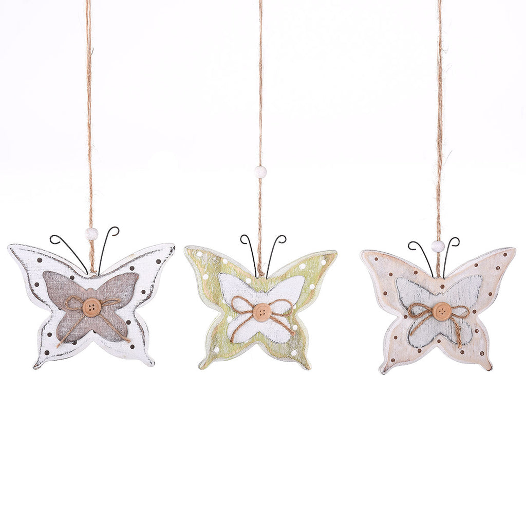 Set 12 Farfalla Assortita in Legno e Metallo Larghezza 15 cm