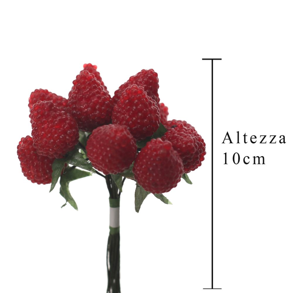 Set 12 Rami Artificiali Lamponi 10 cm in Sintetico