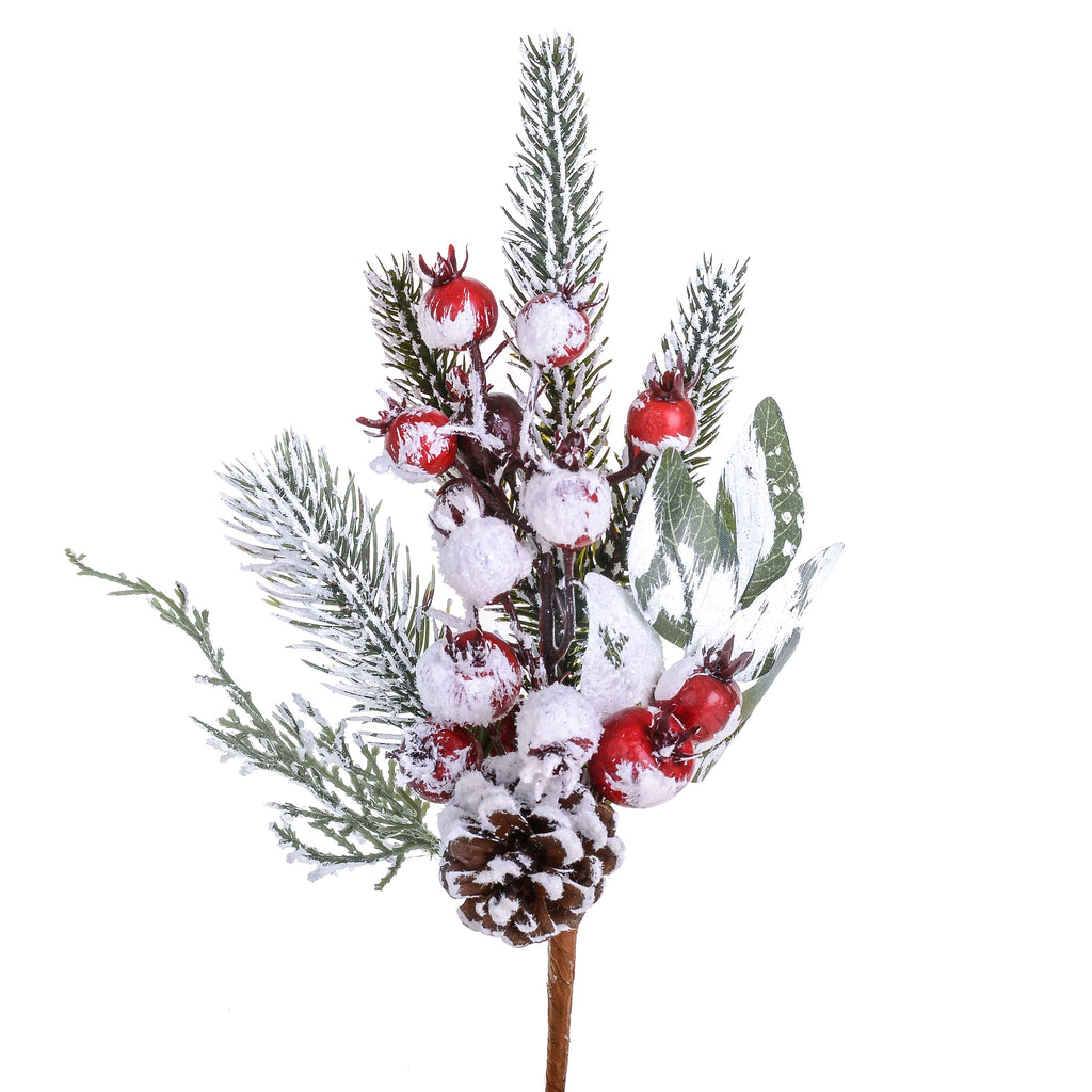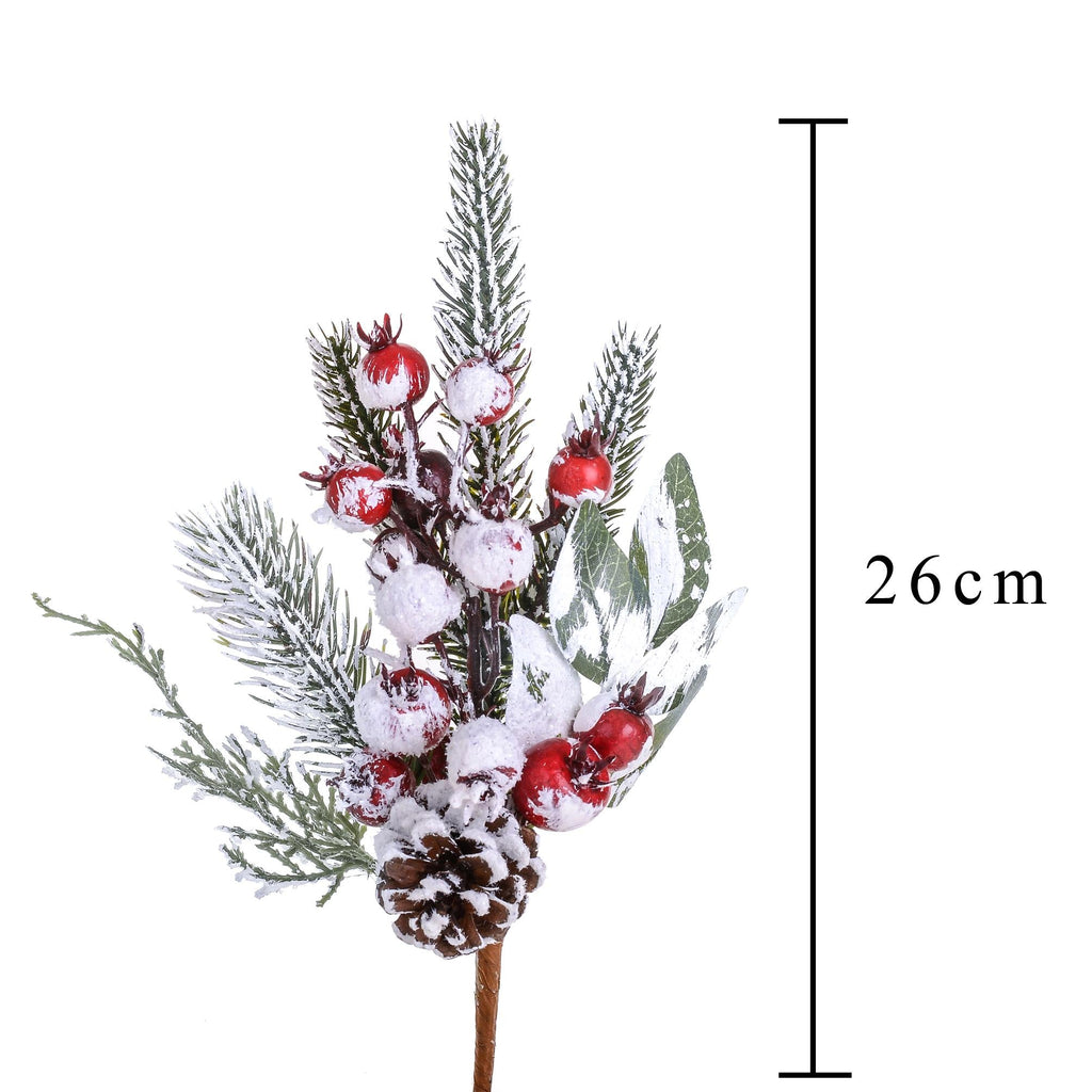 Set 12 Rami con Bacche innevato H26 cm Rosso