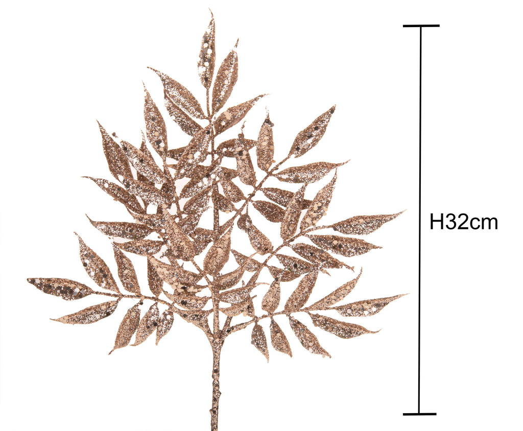 Set 12 Rami Ruscus con Glitter H32 cm Champagne