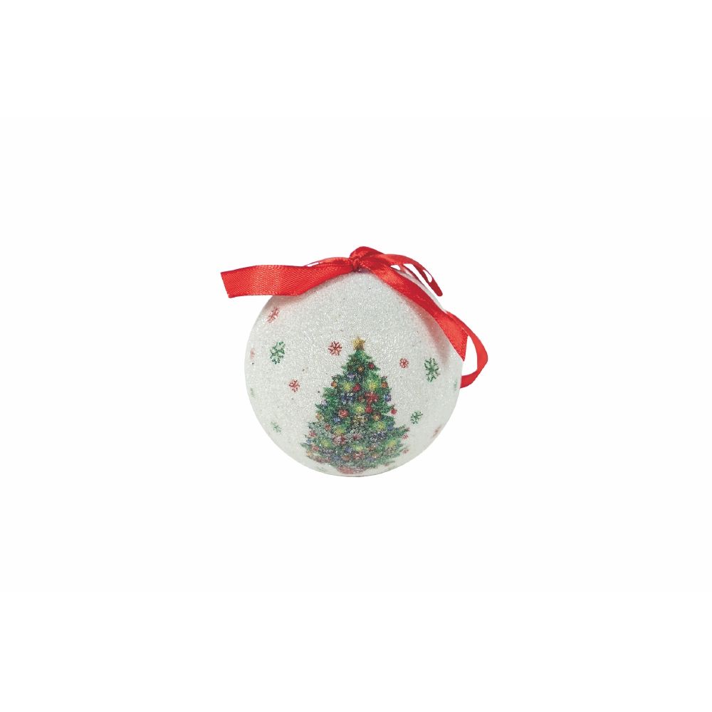 Set 14 Palle di Natale Ø7,5 cm in Polyfoam con Box Fiocchi e Alberi