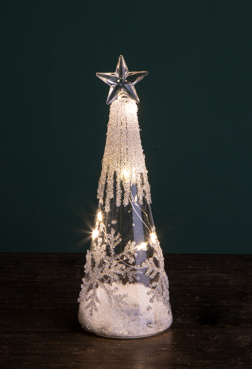 Set 2 Abeti Coni Decorativi con Fiocco Neve H24 cm