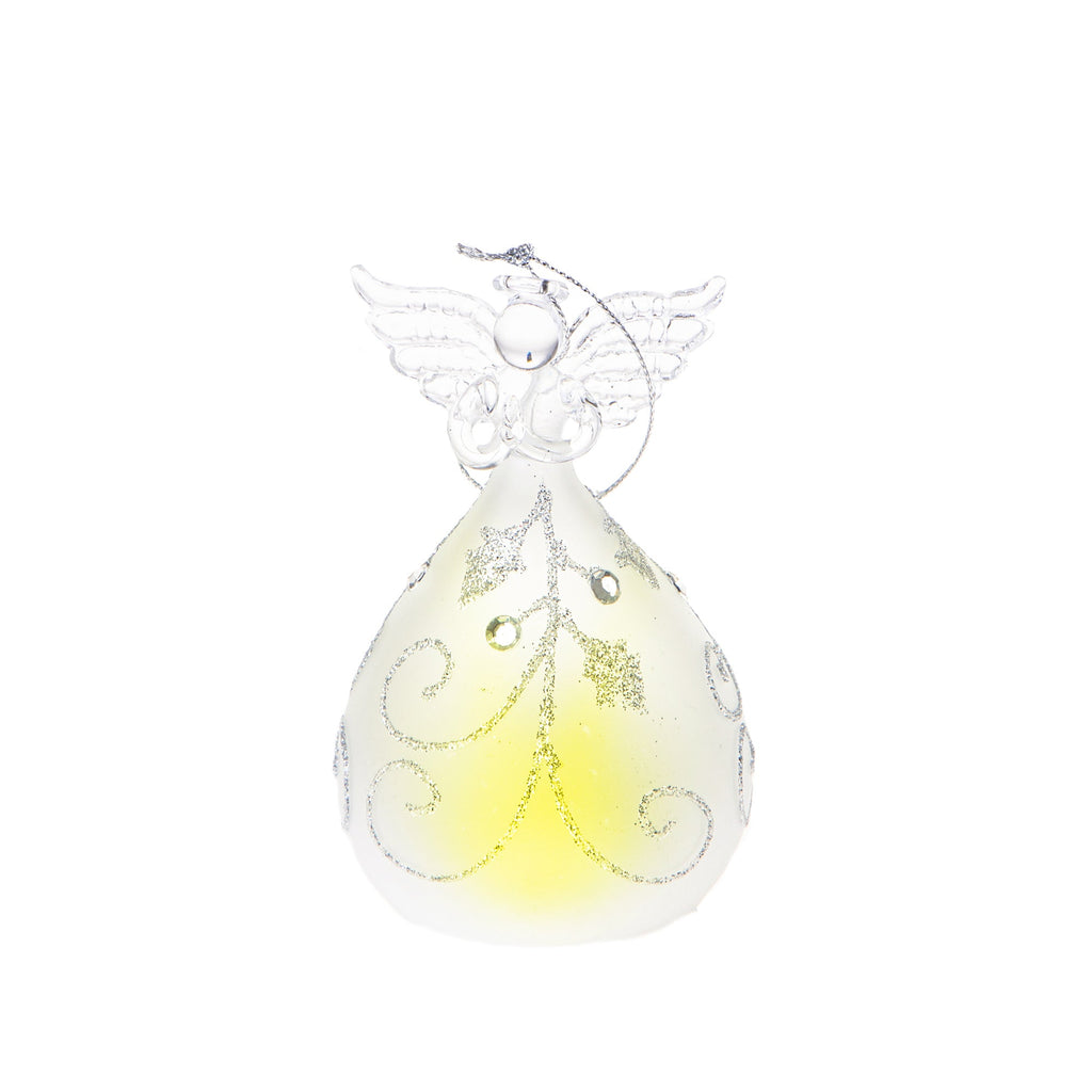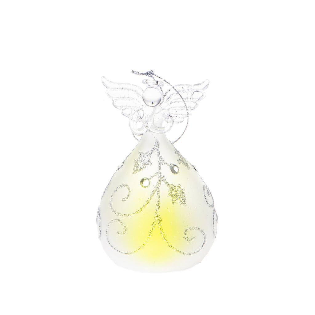 Set 2 Angeli Agrifoglio con Led H10,5 cm in Vetro Silver