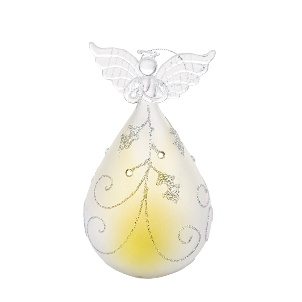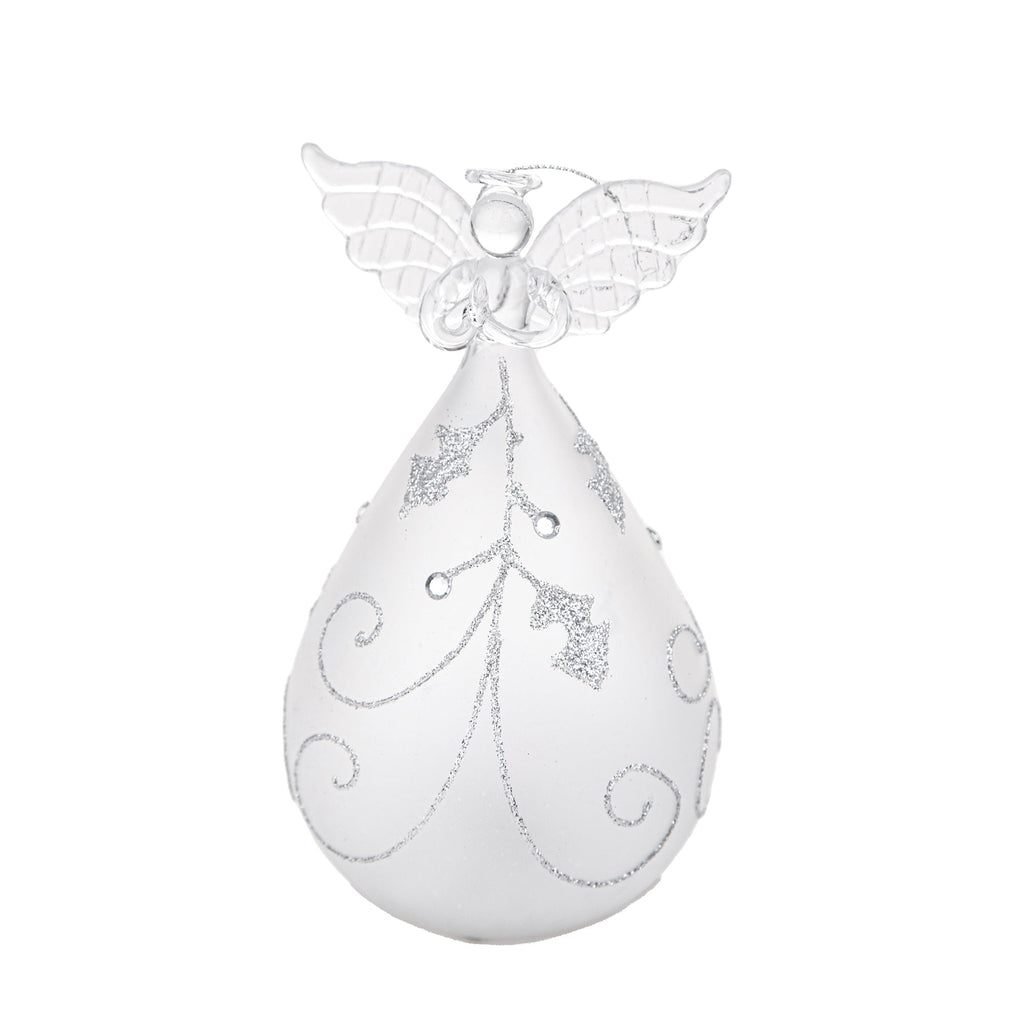 Set 2 Angeli Agrifoglio con Led H16,5 cm in Vetro Silver