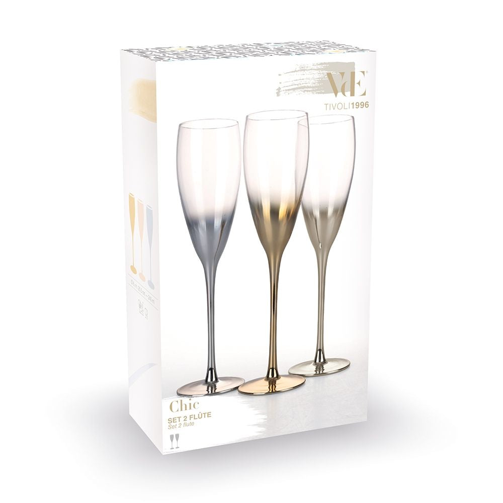 Set 2 Bicchieri da Champagne Très Chic Flûte in Vetro VdE Tivoli 1996 Champagne