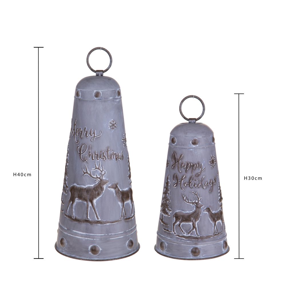 Set 2 Campane Decorative Natalizie 40 cm in Metallo Grigio